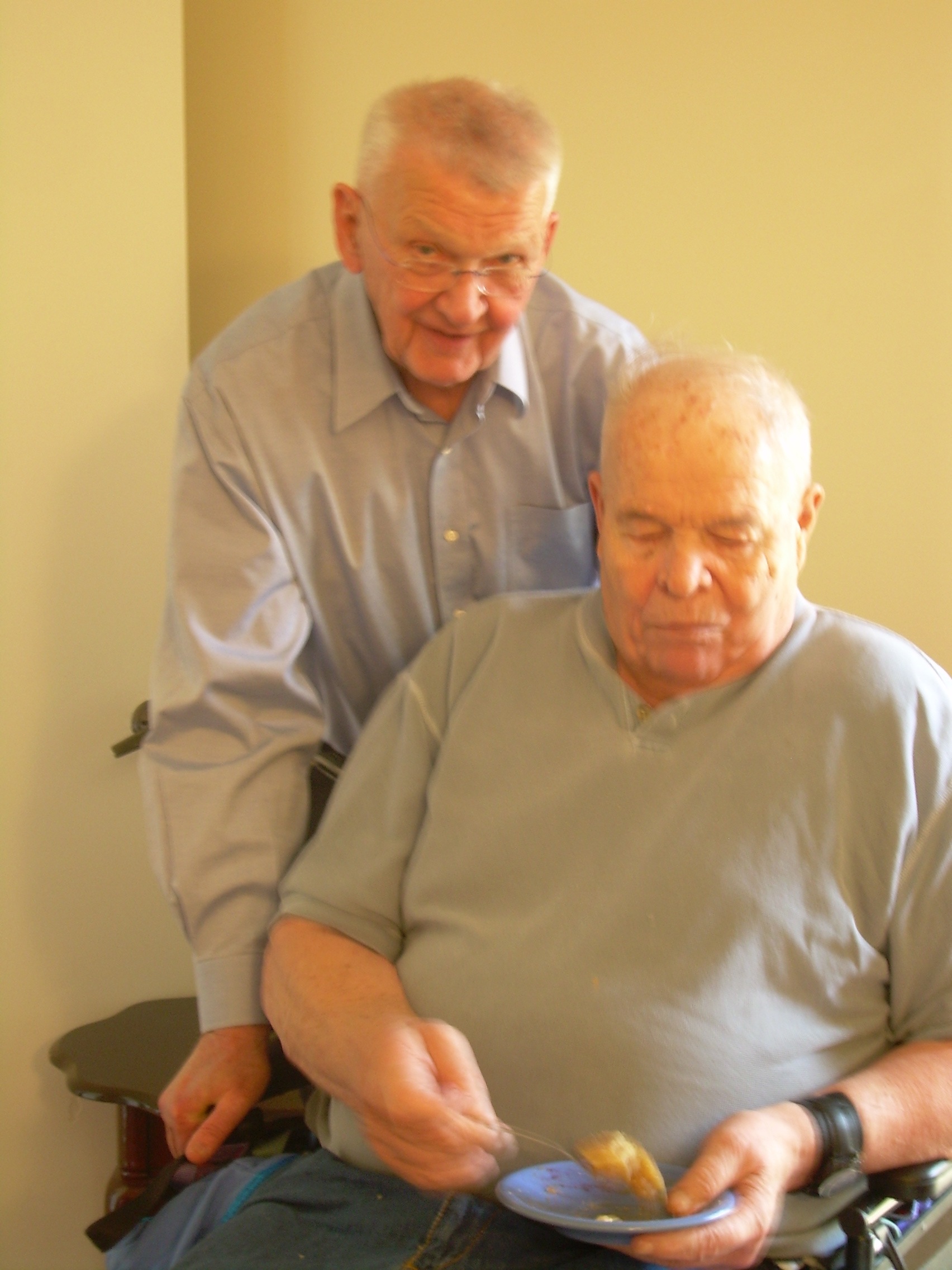 UPDATE: In the 38 years I’ve known him, even when J was depressed or frustrated overall, I have never, ever known him to be down on his birthday. In some periods I used to dread that another birthday would only remind him of the dreams that hadn’t come true, the fruitless time fleeting. It never happened. I learned to trust that I could look forward to his birthday as a sabbath from all that. No matter what, it’s always a serene, happy, positive day for him. Not excited or egotistical or demanding; just sunny and calm. (I don’t want to wonder about his two birthdays in Russia, especially the first one, less than a month after he arrived. He climbed out of a train engine coal bin on the free side of the Iron Curtain two days before the third one, February 19, 1947.) Yesterday was no exception; Axel remarked on how “with it” and communicative he was.