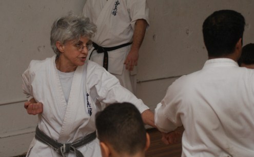 The old bar partners from the 1960s don’t look their age as they watch Tuesday night’s karate promotion (action pix at the link):