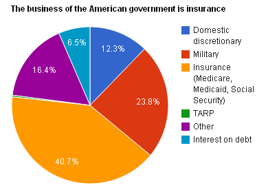 If you look at how the federal government spends our money, it’s an insurance conglomerate protected by a large, standing army.