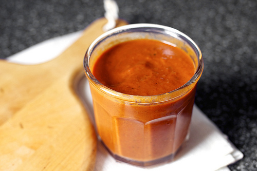 The reason I like Smitten Kitchen so much is that unlike a lot of the other blogs, they usually keep it pretty straight forward, but usually giving you something new and interesting at the same time. Take this recipe for a steak sauce! I normally don’t give steak sauce a second thought (Worcestershire or A1) but even though this has a fair amount of ingredients I am intrigued by the tastes here. You can read the whole procedure over there but I like the idea of all these flavors! Tomato puree, orange juice(!),Worcestershire,ground ginger, molasses, allspice, ground mustard, balsamic vinegar, pepper,salt,onion powder and olive oil, not to mention a charred red pepper! Plus the article gives me the idea of putting this on a number of things, from potatoes to scrambled eggs to maybe a simple hamburger. Making one’s own sauces….I hadn’t given it much thought but it seems intriguing.