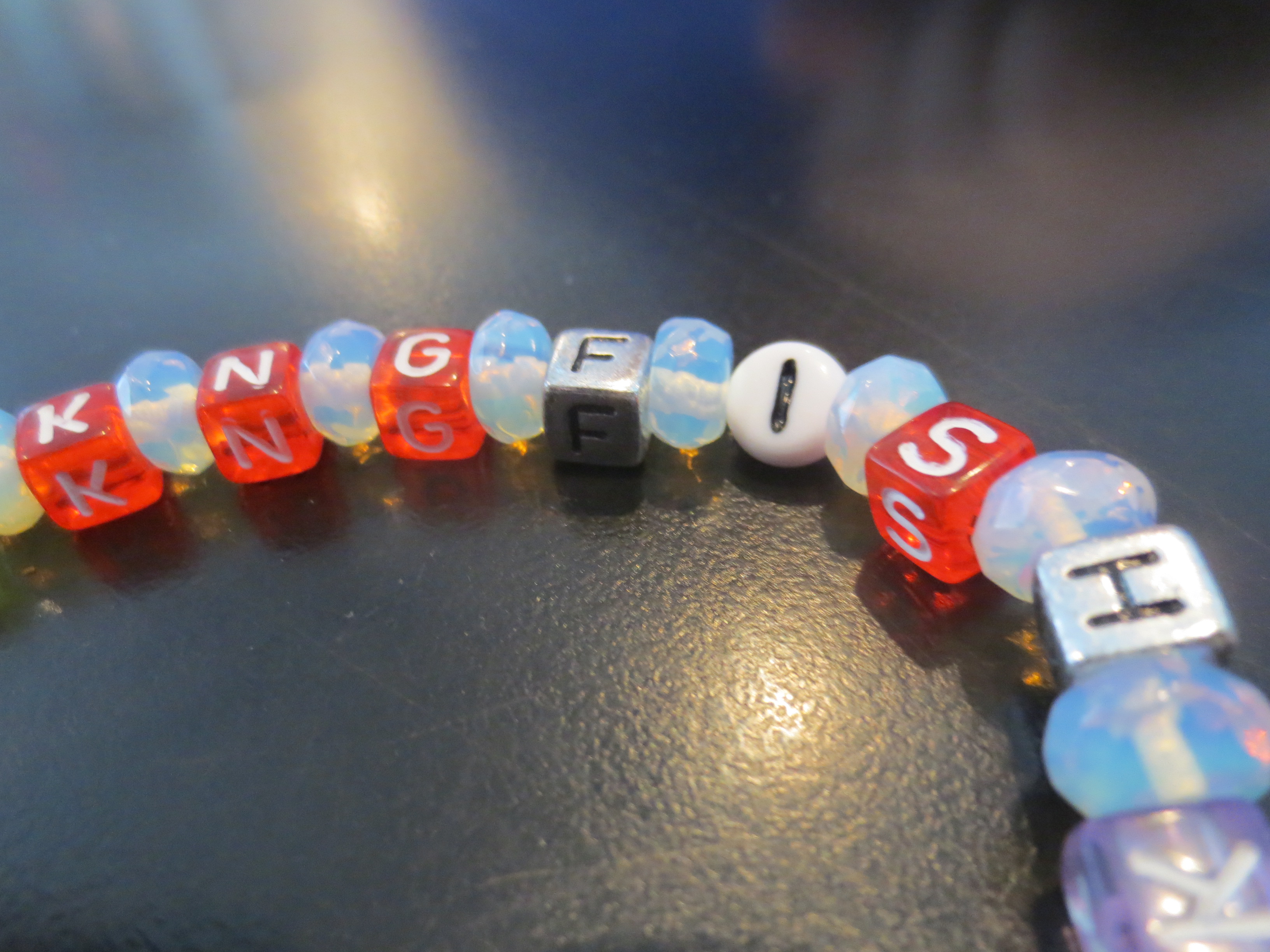 My Twitter Name! My WordPress Name! In beads! Oh, the glorious things the state does to get me affirming life again and again!