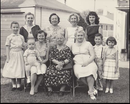 Sorry I haven’t been around much…things are looking poorly for me at the moment, and soon I will have no where to live. (long story) But I haven’t quit, and am trying to make things better. My OT, Jodie, has been my strongest support of late. She is convinced that this will be my year. Me…I wonder. Also the Noble Karen from this watering hole, has been both a support…and a delight. She channels the power of Cow Luck, through the phone to me. There are many disadvantages to getting older….but one of the many advantages is that you know more who you are and what has meaning to you. I’m surprising happy with me, despite a life of one damn disaster after another. This is not a trivial thing. For example I recently found out my younger (of two) sisters died at age 65…and she died in December 2012! No one told me, and I wasn’t even in the obit. I went the website of the funeral home she was in, and found 15 family pics…that I have never seen… I enclose one taken in 1960 with Baby Ron looking like Bismarck sitting on Mom’s knee…the late sister is on the far left, Diane. Grandma is in the middle.